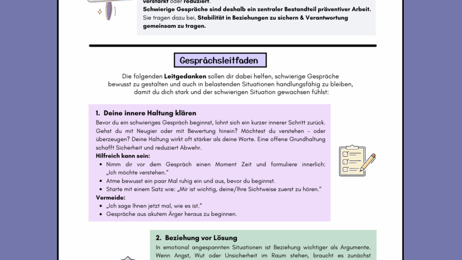 Schwierige Gespräche gehören zum Alltag von Lehrkräften, Fachkräften und Eltern. Wenn Emotionen stark sind oder Unsicherheit im Raum steht, entscheidet die…